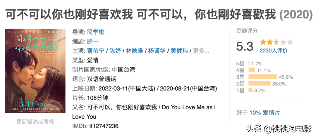 本周上映的另一部超长片名的电影,来自台湾地区的一部爱情片。这个片子其实也是两年前的了,不少朋友也有看过。