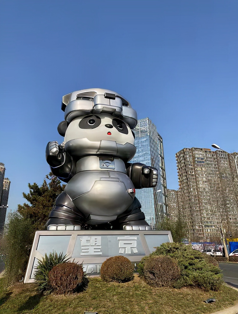 2022年的第一天,望京街头最新落成的大熊猫雕塑终于揭开了神秘的“红盖头”。大熊猫圆滚滚的身躯外面套上了银色磨砂的机甲外衣,头顶一个带有小耳朵的机甲头盔,胸前有一枚醒目的Wi-Fi标志。这头憨态可掬而又有点儿酷的大熊猫,早在正式揭幕之前就已经成为人们热议的焦点。