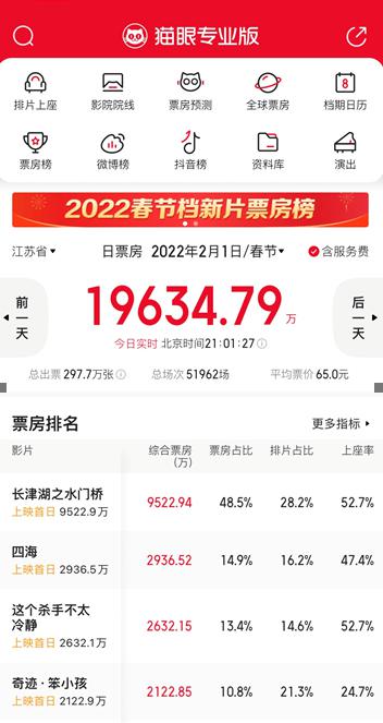 春节档_21小时,江苏电影票房破1.96亿