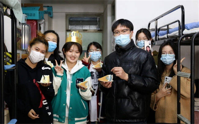 “学生在哪里,我的工作场所就在哪里。”在走访学生宿舍时,特里尔可持续发展技术学院辅导员方宁对所有学生说:“我在南校区临时办公室的门24小时为你们敞开,我和其他驻校辅导员的手机24小时在线,只要有需要都可以找我们!”特里尔学院是烟台大学一个新成立的学院,方宁是目前该学院唯一名辅导员,加入了南校区住校专班,也就意味着他不仅要负责好南校区的各项工作,同时还得兼顾着在北校区的学生。为了在这种特殊时期下做实做细学生们的日常教育管理工作,方宁在平日信息摸排中,注意发现每一个能将暖心服务做到学生心里的机会。3月23日是他一直关注着的中德211-2班徐子媛的生日,看到这个信息后,方宁从校内购买了一个生日蛋糕为她庆生。同时,为了让其他宿舍同学也能通过“味蕾满足”来缓解焦虑情绪,方宁还购买了披萨分给大家。“我们的辅导员老师太有心了,在防疫这样的特殊时刻,还能让我们感受到如家一般的温暖,真是特别感动!”同学们边吃着蛋糕和披萨边幸福地说。