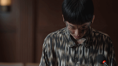 最后一集,他又站在了法庭上,以更可怖的形象,更阴鸷的表情…